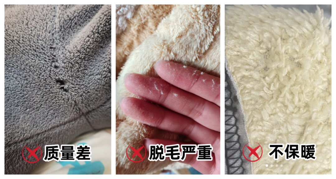 有些黑心商家为了节省成本,选用劣质面料,看着厚实际保暖效果ji差,洗几次还脱毛、褪色了。