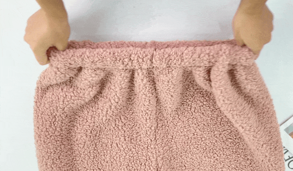 裤腰头弹力很大,用力拉扯,立马回弹。