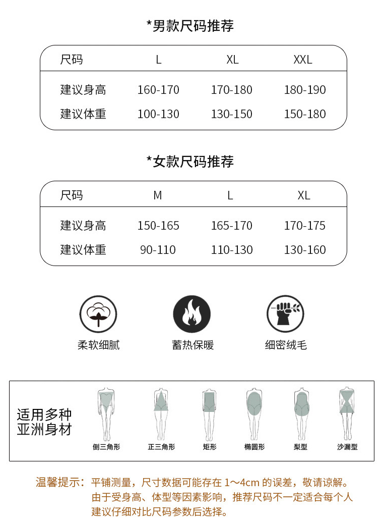 我自己试穿下来觉得不管是北方还是南方,这套暖绒家居服肯定是够够的,穿上跟钻进被窝睡觉一样暖。