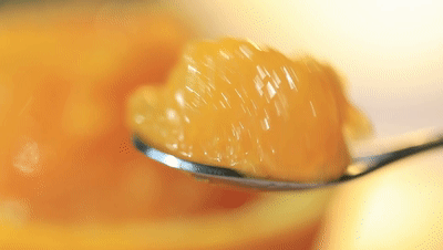 仔细看一下果肉,肉质细腻饱满,没有粗糙的脉络,也没有苦涩的籽粒,透着阳光折射出晶莹的光线,像一块橙红色的水晶果冻。