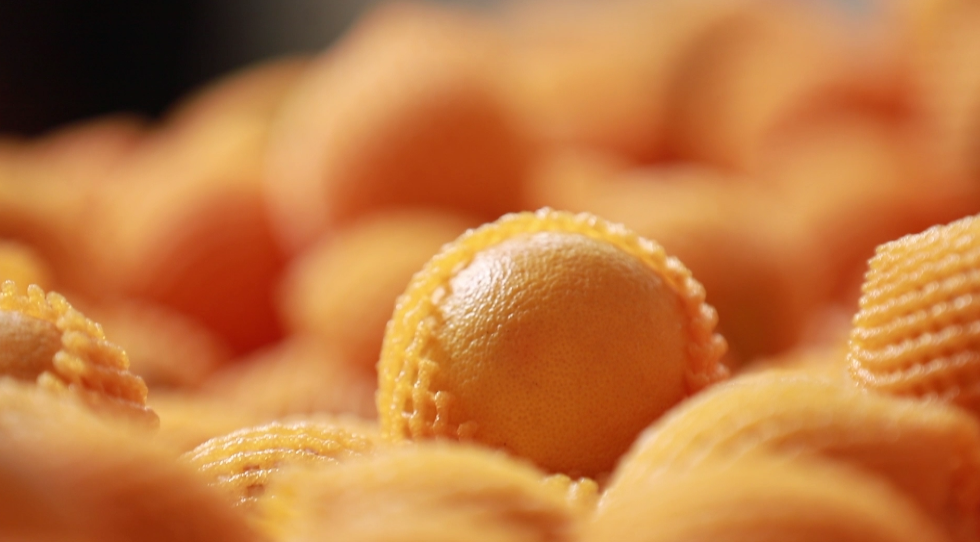 不同于普通橙子厚重的果皮,九月红仿佛一个致力于将营养都长成肉肉的“小胖子”,果皮下藏着肉墩墩的果肉。