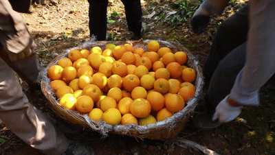 山上本没有路,每一筐橙子,都是他们一筐一筐从山上背下来的,每筐的分量都在一百多斤左右,一个人每天要背两千多斤的橙子。