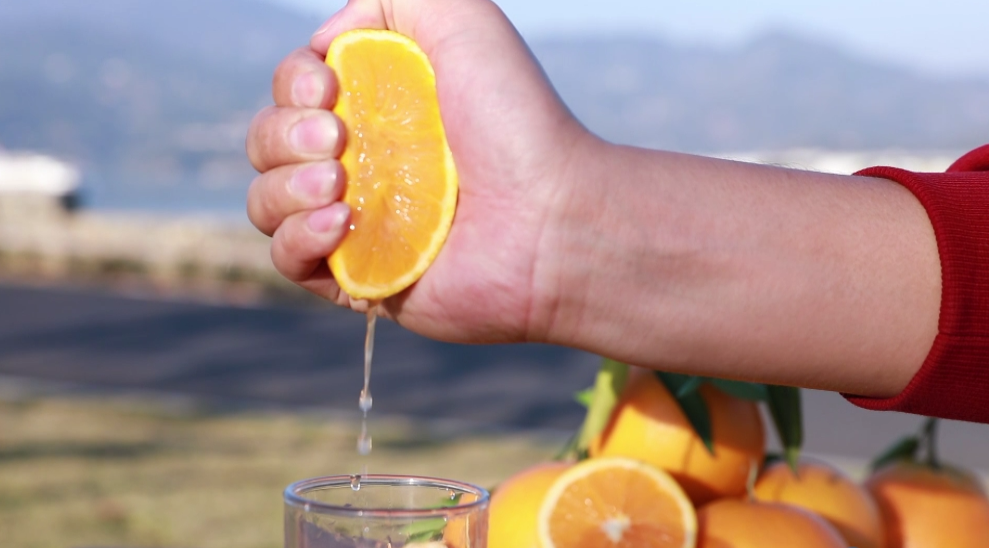 说起吃的方法,九月红也是别具一格了!把橙子捏软一点,插上吸管,果汁一下子喷涌进嘴里,顺着透明的吸管可以清晰的看到果粒!