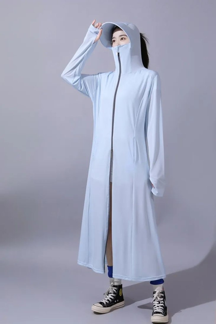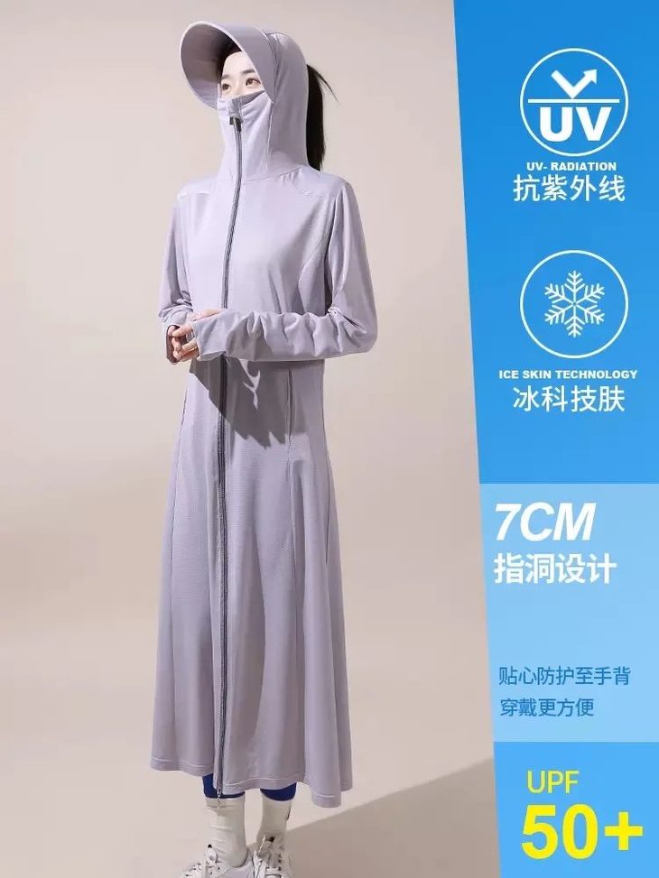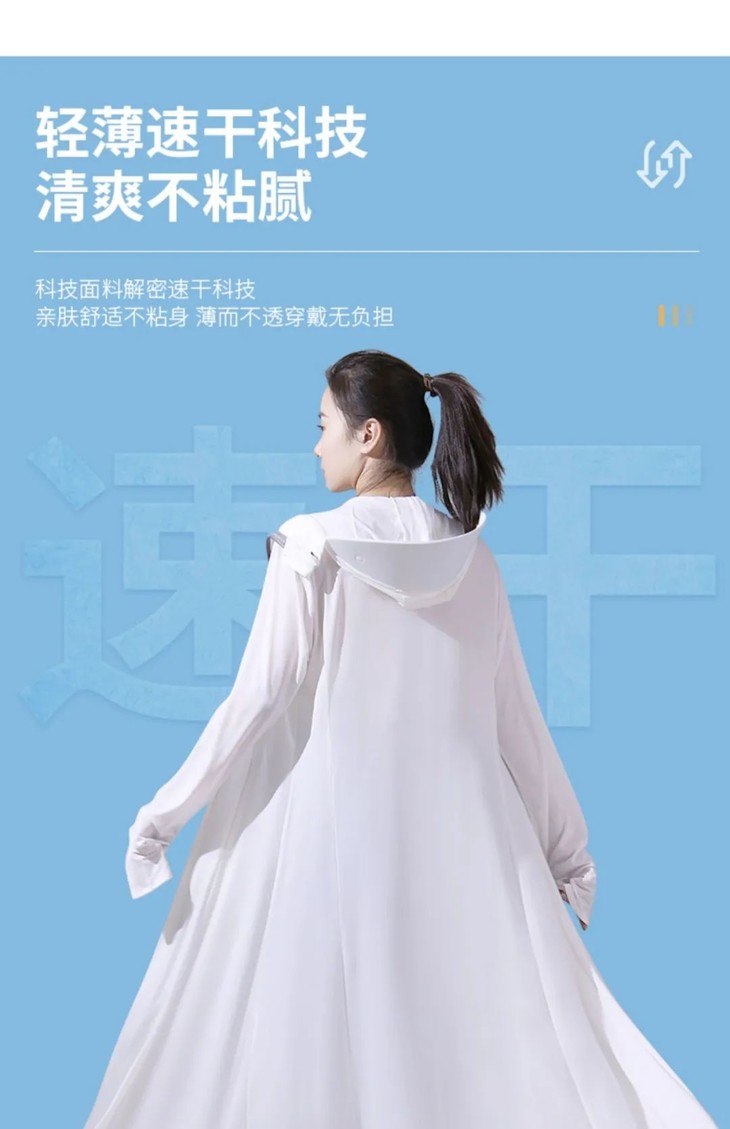相比市面上很多穿上去就闷热难耐的防晒衣,这款长款防晒衣穿上后15分钟,体感温度实测下降了9℃左右。