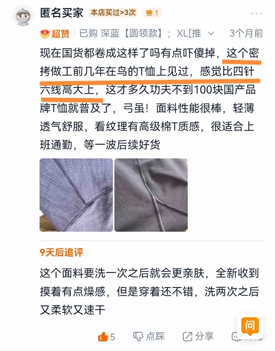 很巧妙地回答这个问题——只要有一点不一样,这就具有了商业上最大的排他性,具体到中空纱这件事,中空纱的加入,确实可以带来,更好的温控/更好的吸湿排汗/更轻一点,但在40℃酷暑的极端情况下,差异最大不可能超过10%。