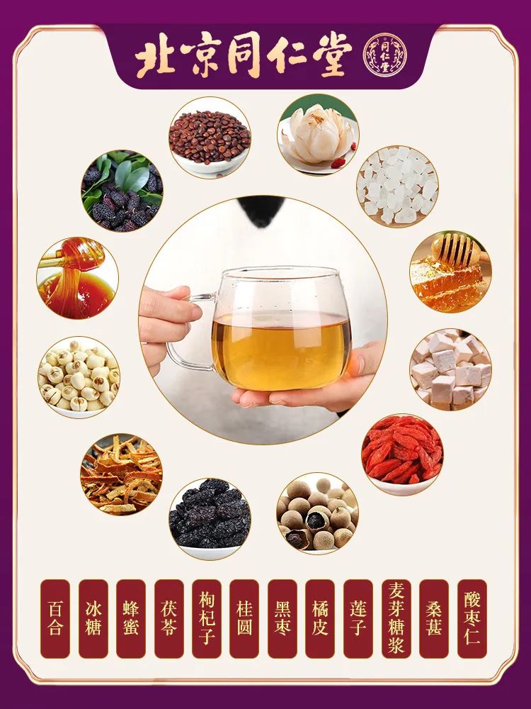 作为老字号的同仁堂,它家的【北京同仁堂·怡福寿】百合酸枣仁膏 ,还搭配酸枣仁、橘皮、枸杞子、百合、茯苓、莲子、黑枣、桑葚、桂圆等。 为长期有睡眠障碍的人解决了不少难题。