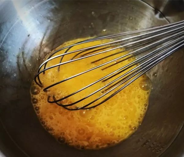 2、鸡蛋打散,加入1小捏盐,抽打均匀;