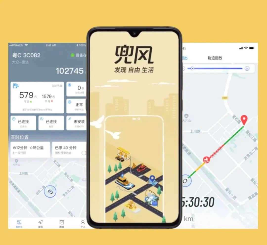 当你车机带4G网络,再搭配老司机必备神器——兜风app,不仅能实时查看爱车位置,回溯历史轨迹,分享行程,还有设置围栏防盗、统计油耗、保养提醒等功能。