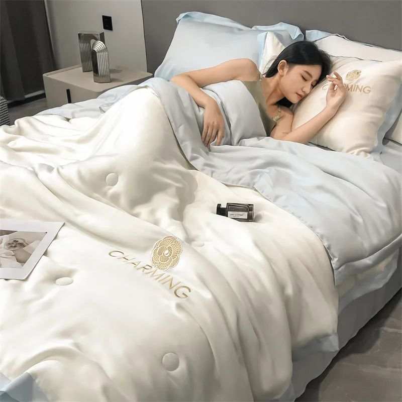 所以,是时候和它们说分手,换上新欢:水洗真丝夏被,它与夏季超合拍,透气微凉,柔软不闷。