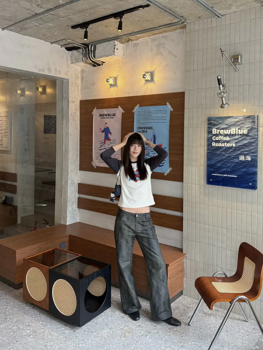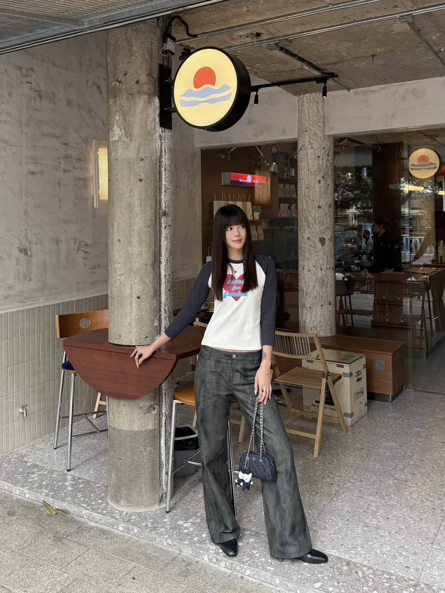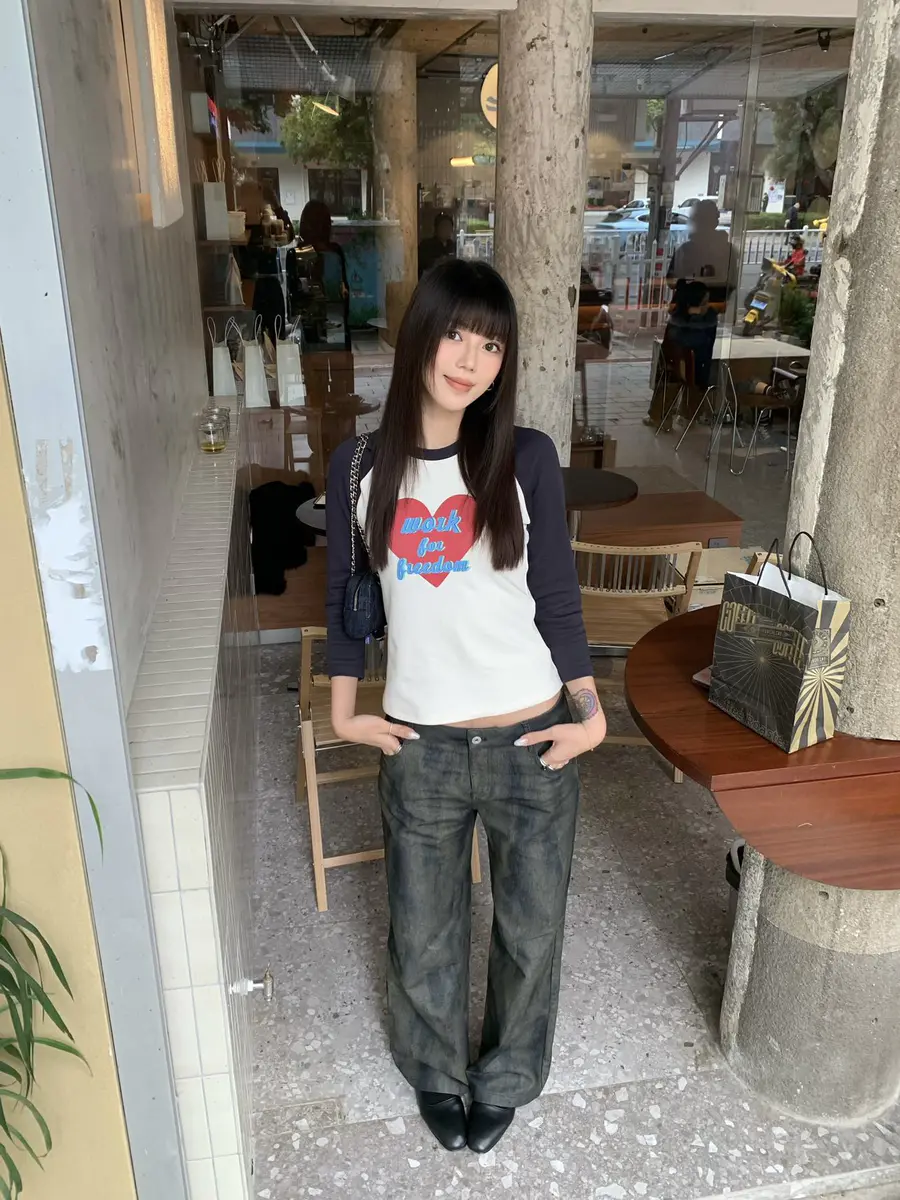 新品上身| 蓝色印花t搭斑驳牛仔裤💞