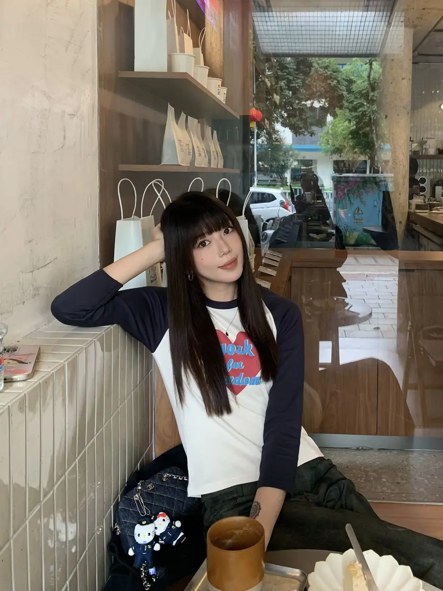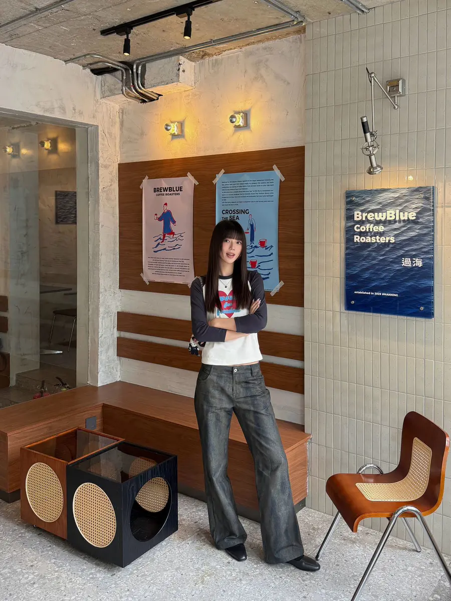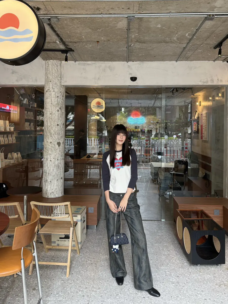 新品上身| 蓝色印花t搭斑驳牛仔裤💞