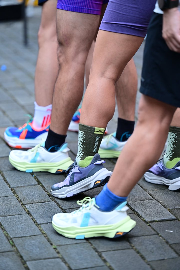 鲲鹏鞋头风暴级TPU护甲+坚韧致密鞋面,构筑起双重防线,强势抵御尖锐物穿刺,让跑者安然穿越这片“刀阵”,全程双足完好无损。