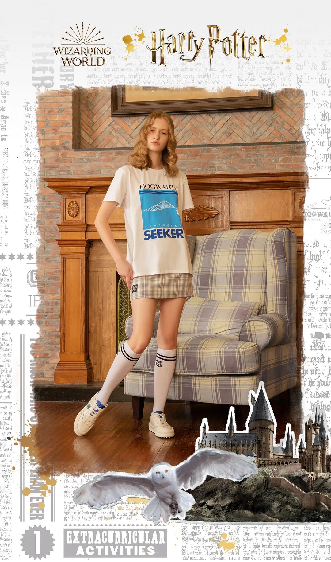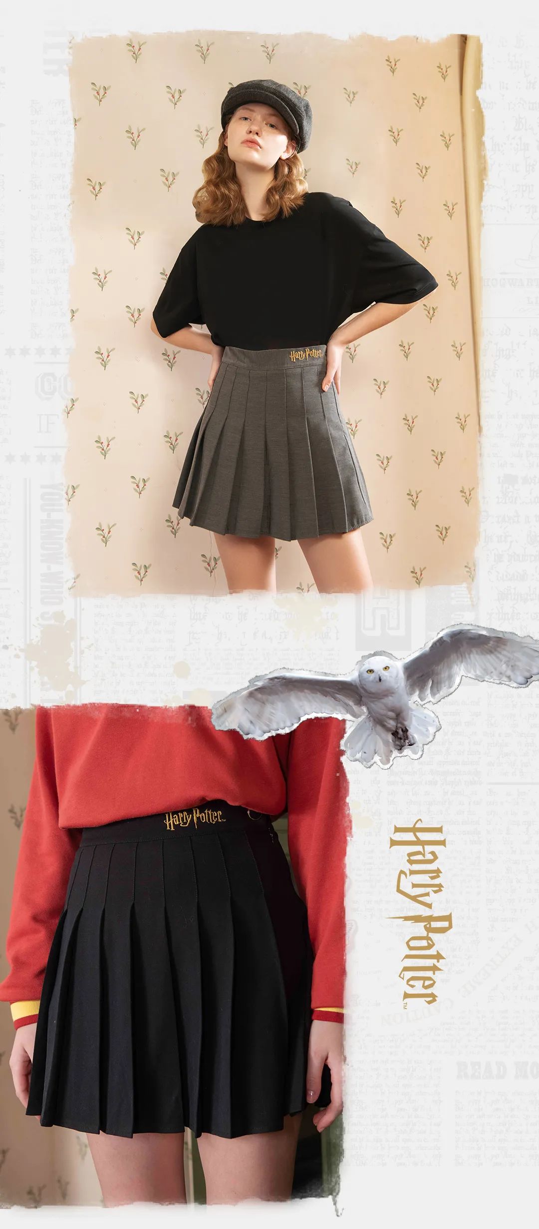 哈利波特x澳洲Everau联名款学院风穿搭,男女款小白鞋、霍格伍兹Polo衫、格子短裙、邓布利多袜,到位!