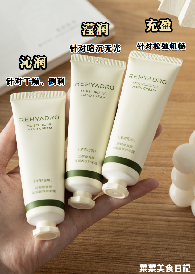 低至4.95元/片!!要知道普通保湿功效都现在都7,8块一片了!更何况这还是主打紧致淡纹的面膜!姐妹们果断囤个4盒!秋冬天气干燥,手部经常干裂有倒刺,还没买护手霜的姐妹,必须果断速速备上这盒!护手霜最重要的功效就是保湿,但很多护手霜涂完瞬间很滋润,过一会儿手就又开始变干。润熙泉这款护手霜涂开之后不仅能很快被皮肤吸收,还能在皮肤表面形成一层水润的保护膜,减少手部肌肤水分流失,涂完一整天手都又滑又嫩的!原因就在于它特别添加了华熙专利——洗不掉的玻尿酸。不同大小的玻尿酸能够高效渗透皮肤各个层次,可以在皮肤表面形成一层保护膜,做到持久锁水保湿。为了加强渗透和修护效果,这款护手霜中还特别添加了高压微射流纳米级工艺的神经酰胺微乳,分子量更小!渗透性更强!亲肤性更佳!坚持使用,双手肉眼可见变细腻润泽了,摸上去又软又滑。平时洗完手可以薄涂做即时保湿,也可以晚间厚厚敷一层做密集护理~而且为了满足各种护手需求,这组合有三支手霜,3支都有不同的功效:特别添加了霍霍巴籽油+牛油果树果脂+刺阿干树仁油这3重极地耐旱油脂,深入护理甲缘,改善粗糙、倒刺、起皮问题。滢润护手霜:针对暗沉无光的手部,特别添加了高光精粹—白睡莲提取物+烟酰胺。充盈护手霜:针对松弛粗糙的手部,添加了冻龄元胶原蛋白+GABA+法国腊菊提取物,改善手部干纹裂纹。3款香型都不同,非常好闻, 不管你是喜欢香甜花果香、清新草木香还是浓郁花香,它都能满足!之前涂完它去上班,甚至还被同事问喷的香水是什么牌子的。