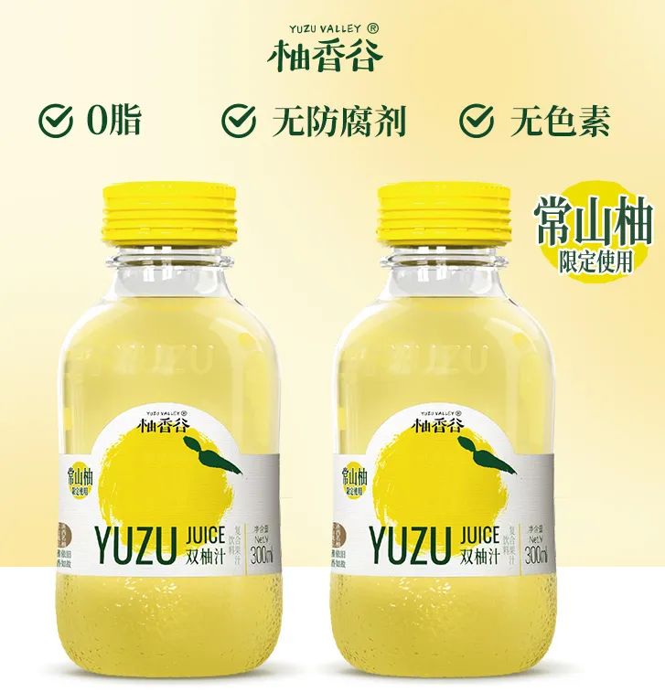 双柚汁,精选优质日本香柚(YUZU)和常山胡柚,以常山柚香谷为依托,种树6年,方才酝酿了清雅独特的浓郁柚香。双重的美味+丰富的口感=独一无二的美妙体验。