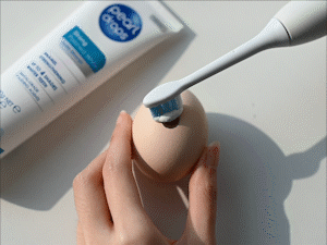 对比起来,倍洁丽的珍珠劲白牙膏简直治愈强迫症。整个圆圈都基本被刷干净了,只留下了一丢丢渗进蛋壳缝隙的印记,再刷久一点会更淡。