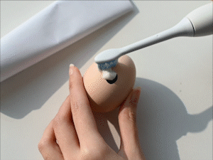 鸡蛋模拟牙齿,黑色圆圈模拟染色污渍。我提前1个小时画上去的,干透以后比喝完浓咖啡的色素还要顽固~