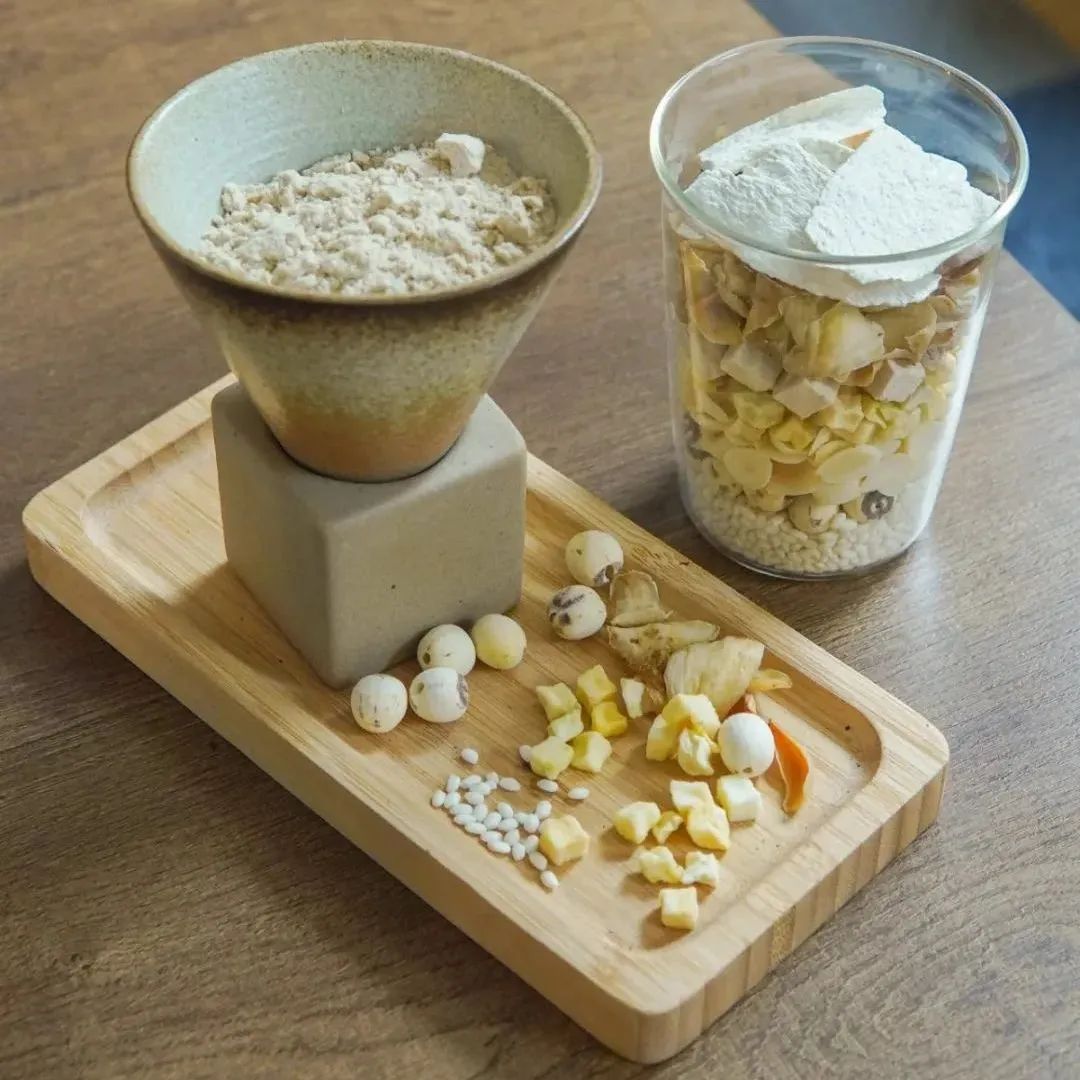 为了保证口感,每一款食材都经过单独处理,研磨成不同粗细的颗粒后,再经过仔细混合均匀。