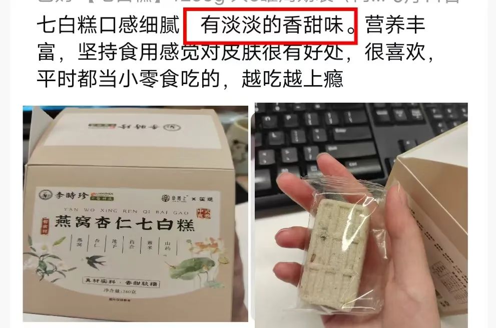 这款燕窝杏仁七白糕来自李时珍中医研究所,他们秉承“传承药圣李时珍,深耕中医养身”的理念。