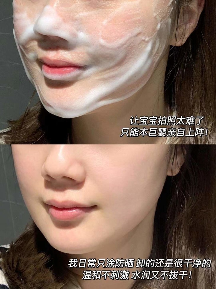 加上有些宝妈出门会给宝宝涂防晒,光靠清水很难洗掉灰尘和油脂!所以洗面奶的选择上不光要温和,还要能够有效去除油污!