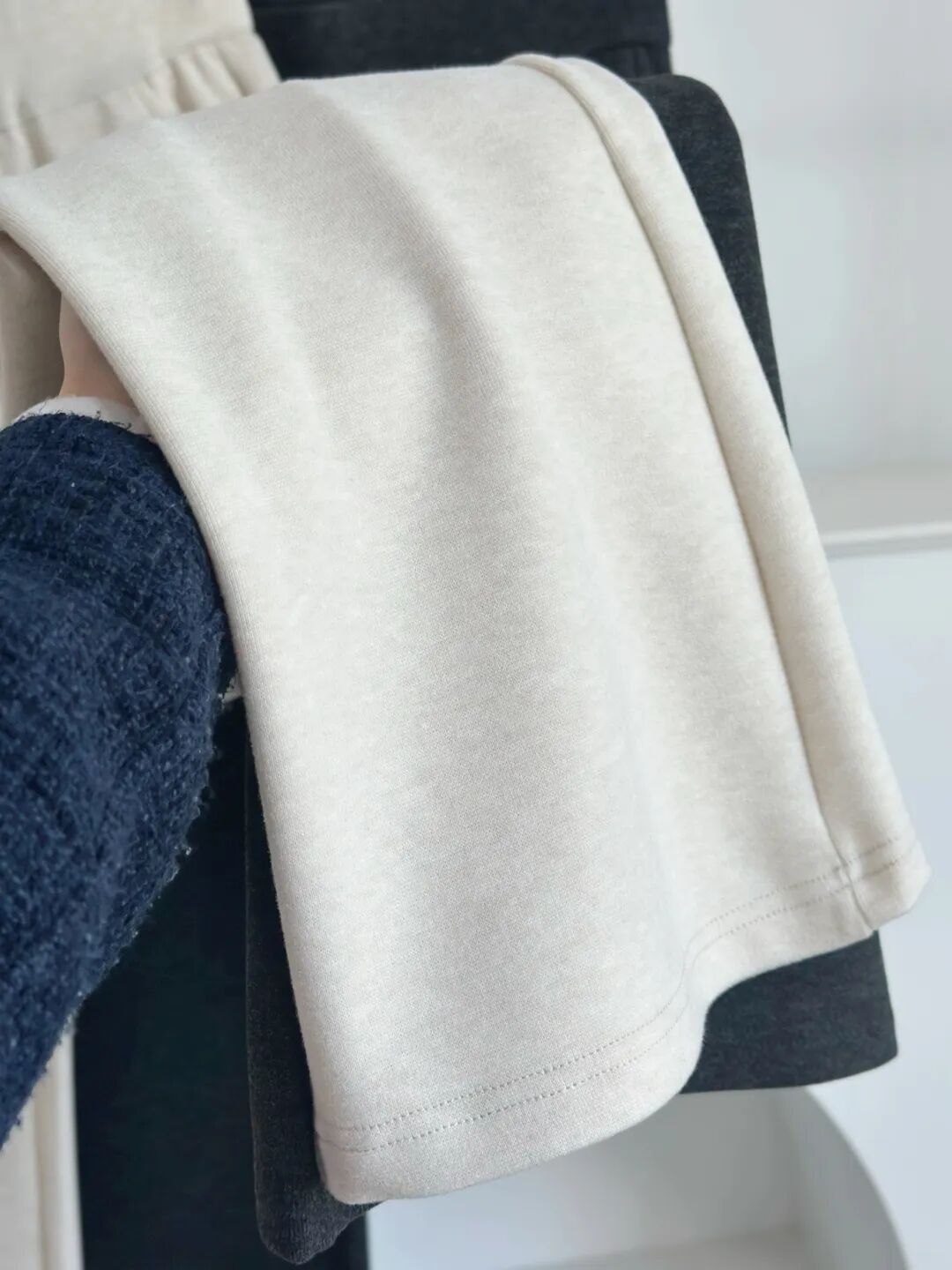 面料有点类似软糯版本的卫衣质感面料。
