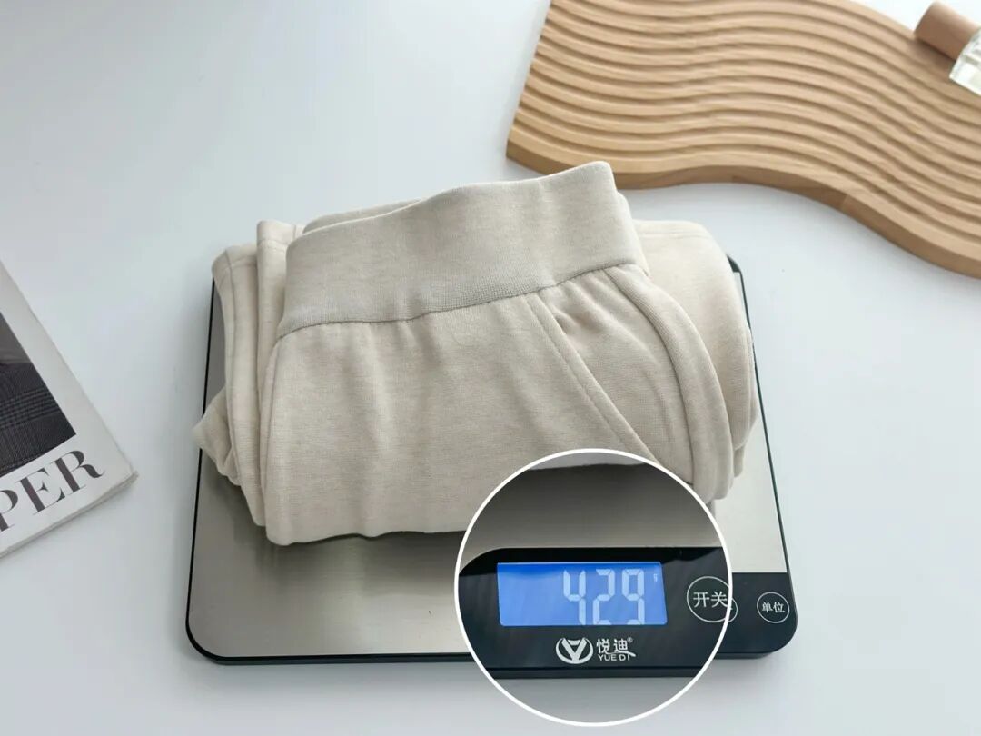 裤子本身面料就自带分量感,一条足足有429g重。