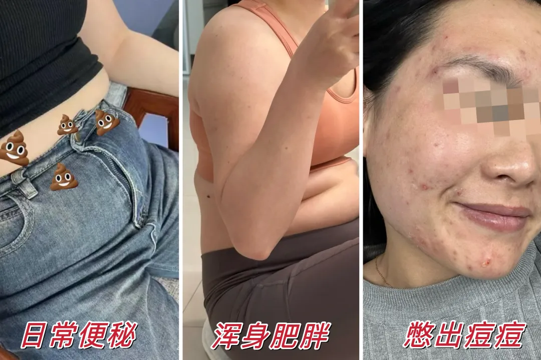 平常还反复便秘、总是胀气、小肚子越来越明显,甚至脸上憋出来不少痘……