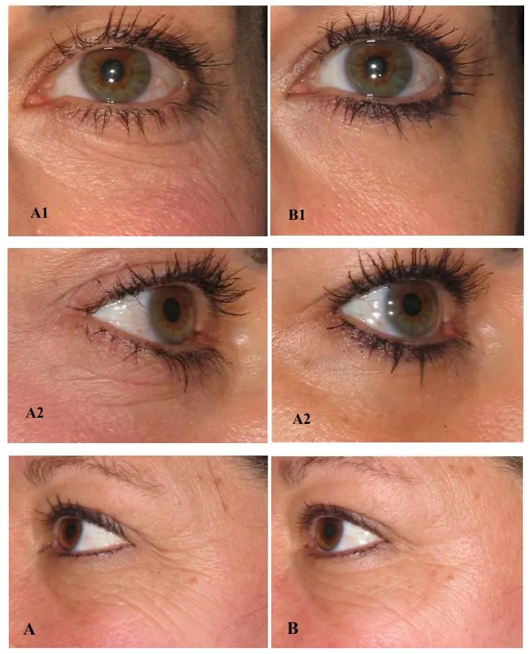 3 个月后,受试者眼部的皱纹都有了不同程度的改善。