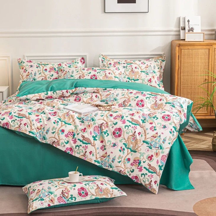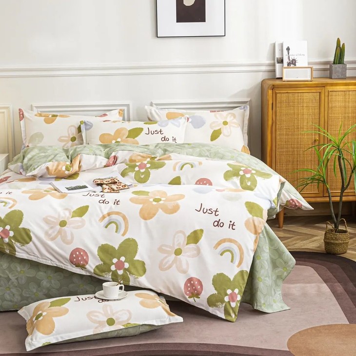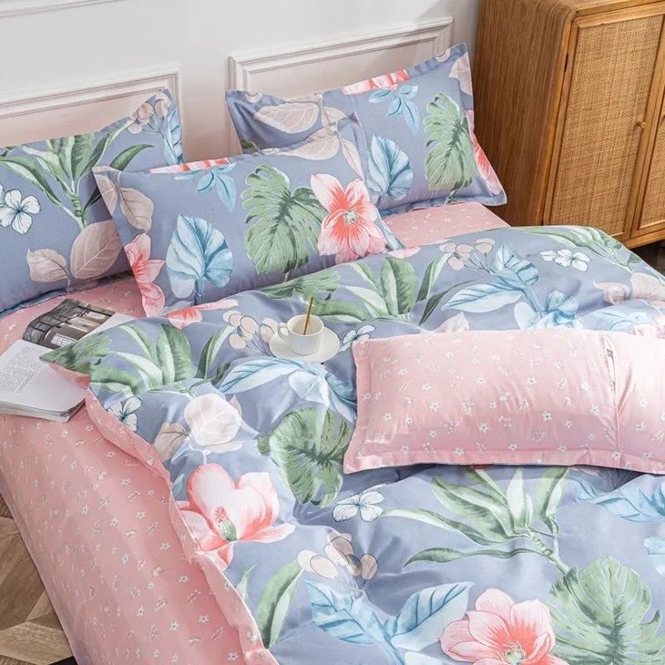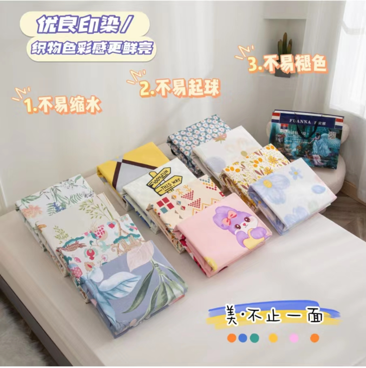 加密布料,可水洗/可机洗/可高温熨烫,不容易变形、缩水;活性印染不容易褪色,盖久了图案还跟新的一样呢!
