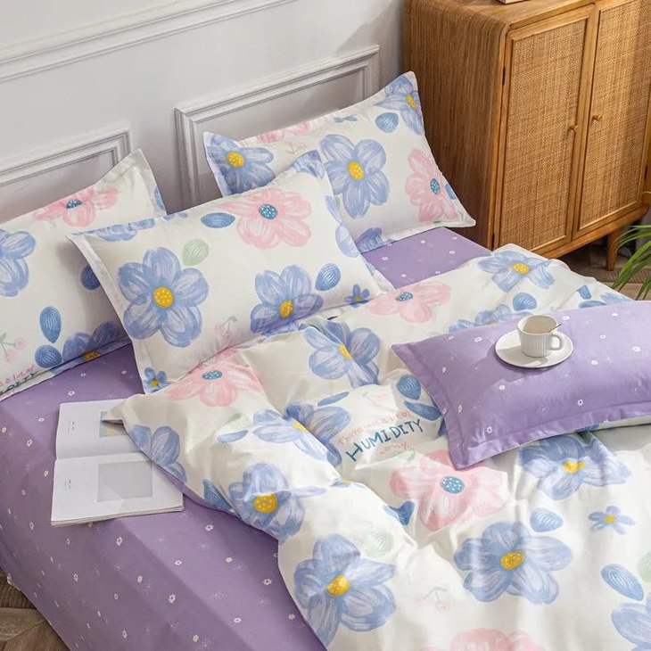 【诗情画意-紫】太美了!!满足你对浪漫生活的所有幻想~细节上的高级感加上唯美的紫色花朵,柔软细腻的棉质触感,四季通用,裸睡也舒适!