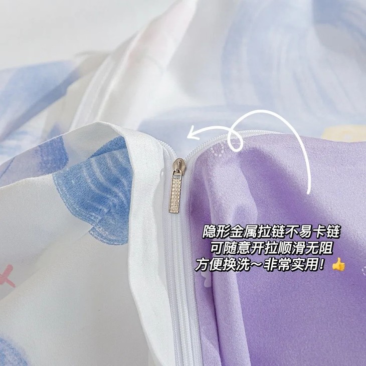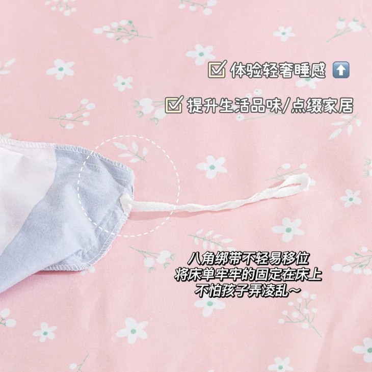 隐形拉链,换洗方便;八角绑带不易移位,固定床单,孩子蹦蹦跳跳也不容易乱!