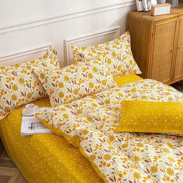 【花蕊】嫩黄草绿的配色就是春天,马卡龙的简单配色也特别少女心,柔软舒适,亲肤的感觉也仿佛躺进了春天里,一改秋冬的温暖厚重变得清新清爽~仪式感就从这款四件套开始!