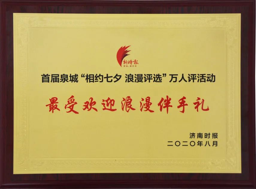 2020年8月 被评为最受欢迎浪漫伴手礼