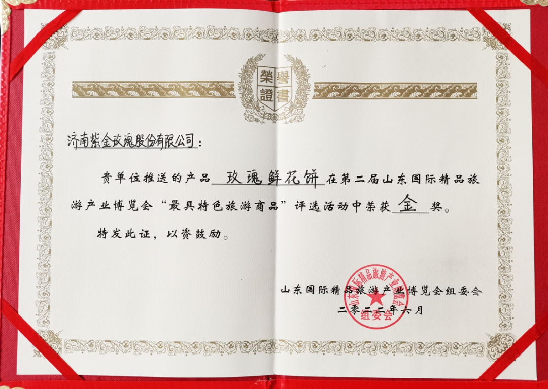2022年6月 荣获第三届山东国际精品旅游博览会最具特色旅游商品金奖