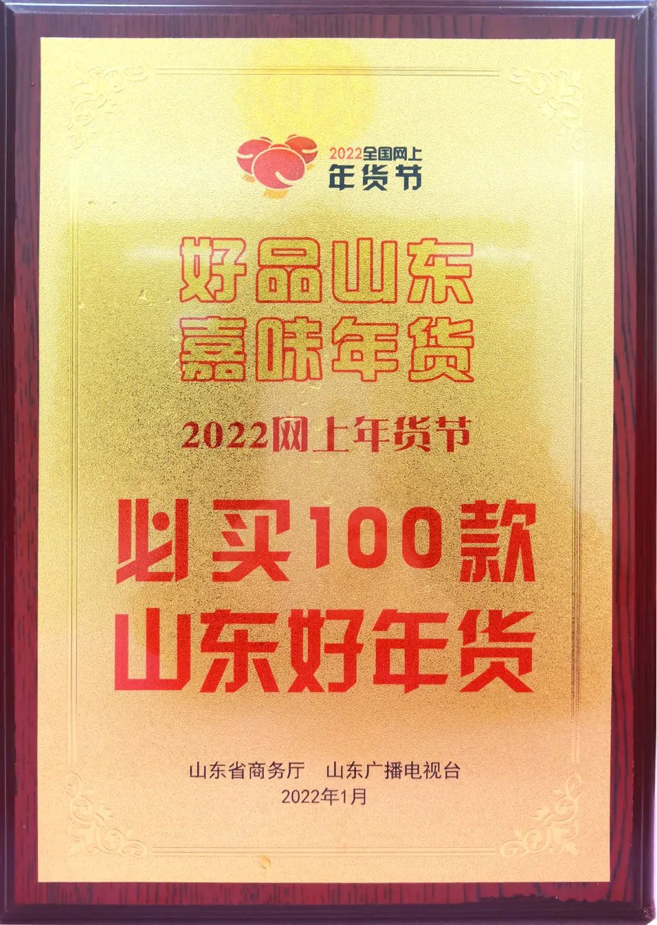 2022年1月 荣获好品山东必买100款山东好年货