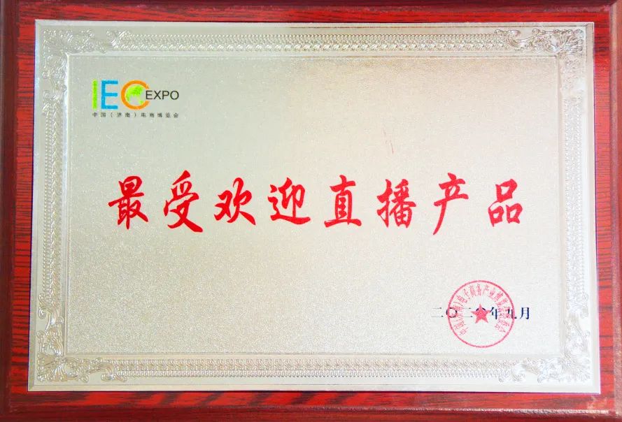 2020年9月 被评为最受欢迎直播产品