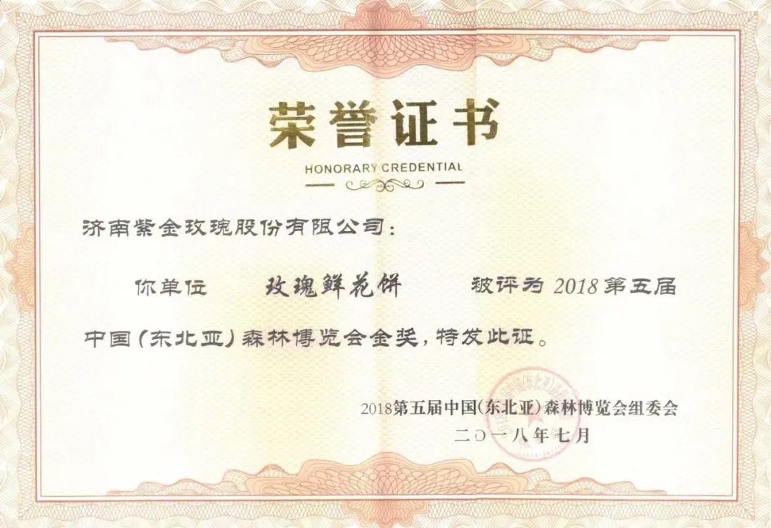 2018年7月 被评为2018年第五届中国(东北亚)森林博览会金奖