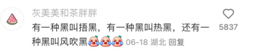 有网友点出,这种黑法叫“捂黑”“热黑”,从字面意思理解就是皮肤被遮盖后,由于温度高、不透气而变暗沉了。
