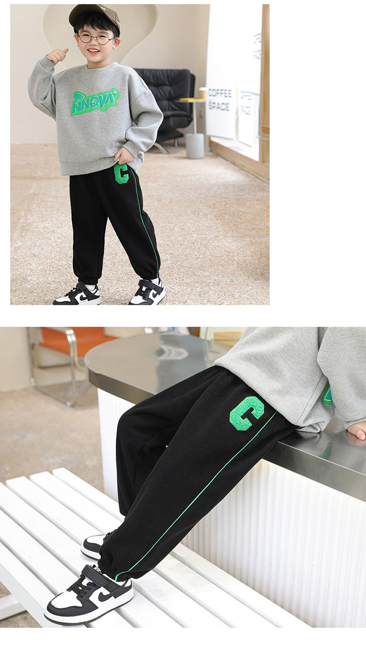 大腿部分做了宽松设计,让胖一点的娃也能轻松穿下,小腿部分慢慢收紧的设计,娃穿起来超有型。