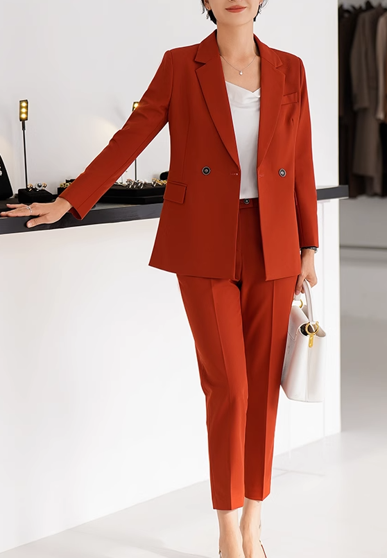 红色西装职业套装是一款经典而又时尚的选择,