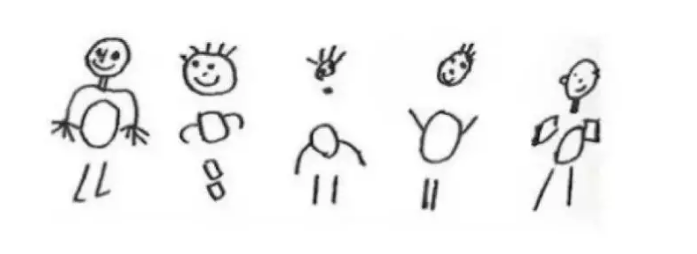 而看电视内容不被限制的孩子,画出的小人要么断手、断脚,要么身体不完整或只有局部,显然是孩子被电视中的某些不好的内容影响到了。