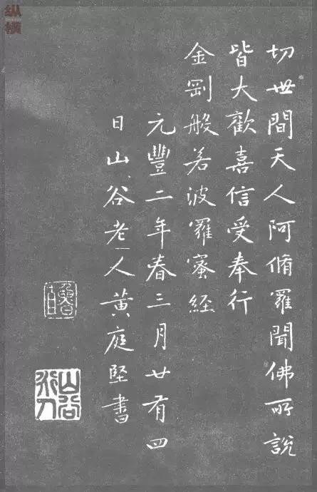 ▲ 苏东坡《金刚经》局部▼ 黄庭坚《金刚经》