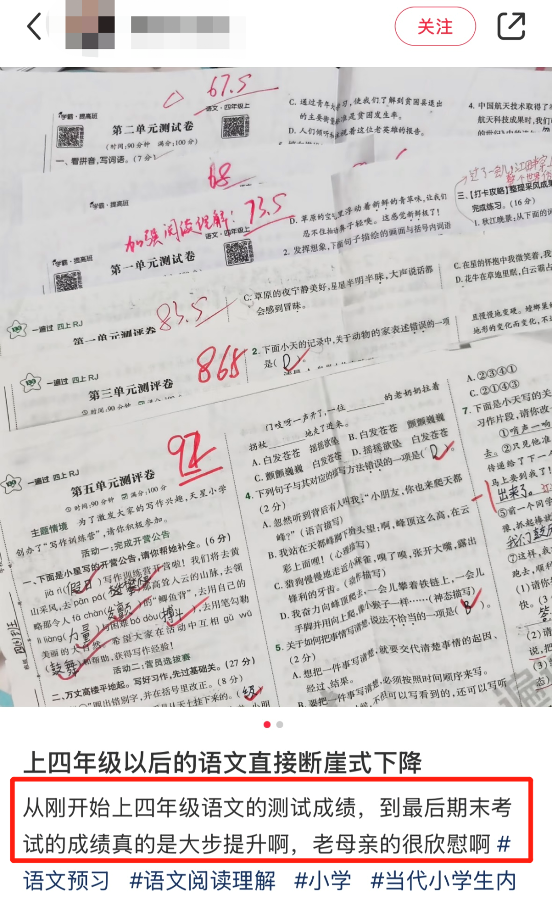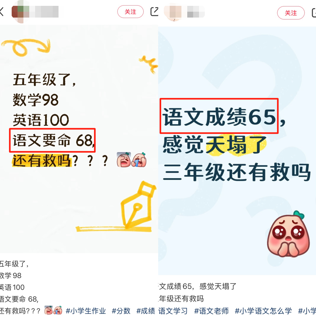 看到网上很多家长吐槽,孩子数学、英语都不错,独独语文68、69分,