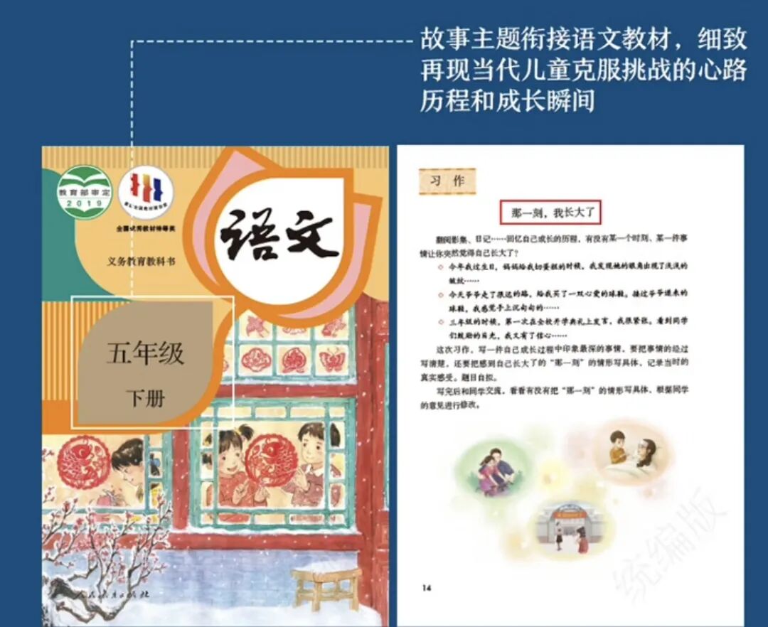 比如《潜入湖底的男孩》,链接五年级课本第一单元的习作主题“那一刻,我长大了”