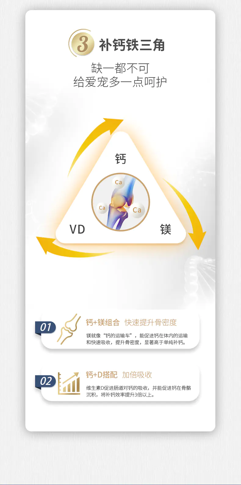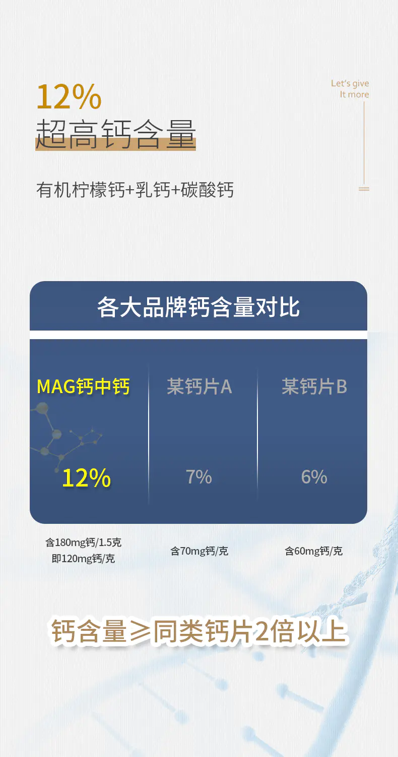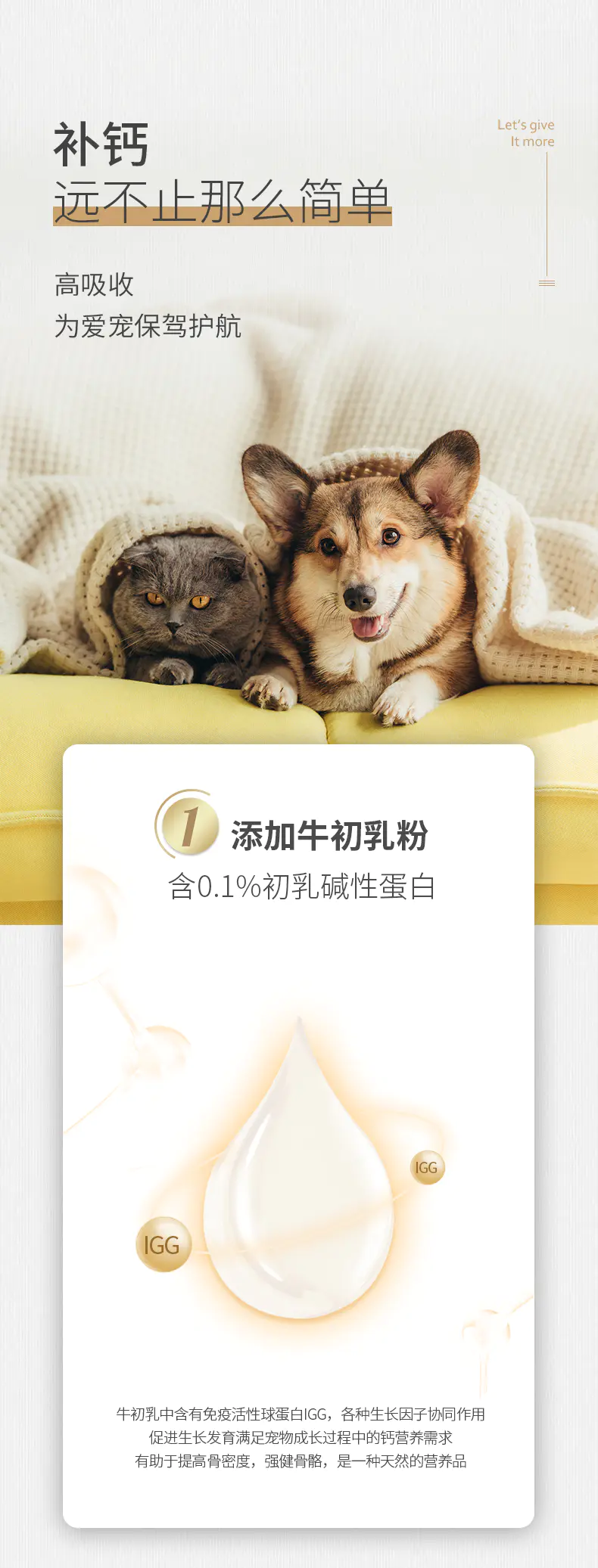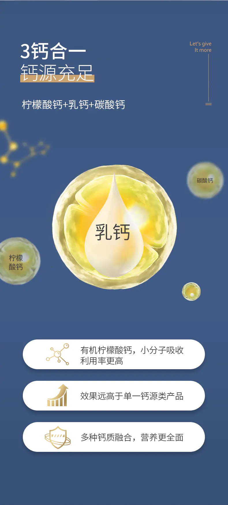 三种钙配合补钙更全面,有机柠檬酸钙,高效吸收,更好利用率。温和易消化,添加牛初乳,提高骨密度。
