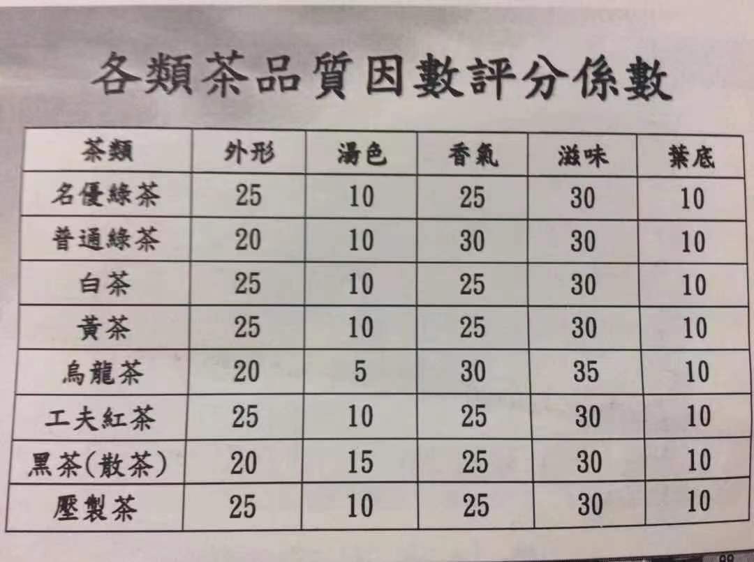 台湾评鉴茶的分数也是评外形、汤色、香气、滋味、为主、四项分数若一致才比叶底分数
