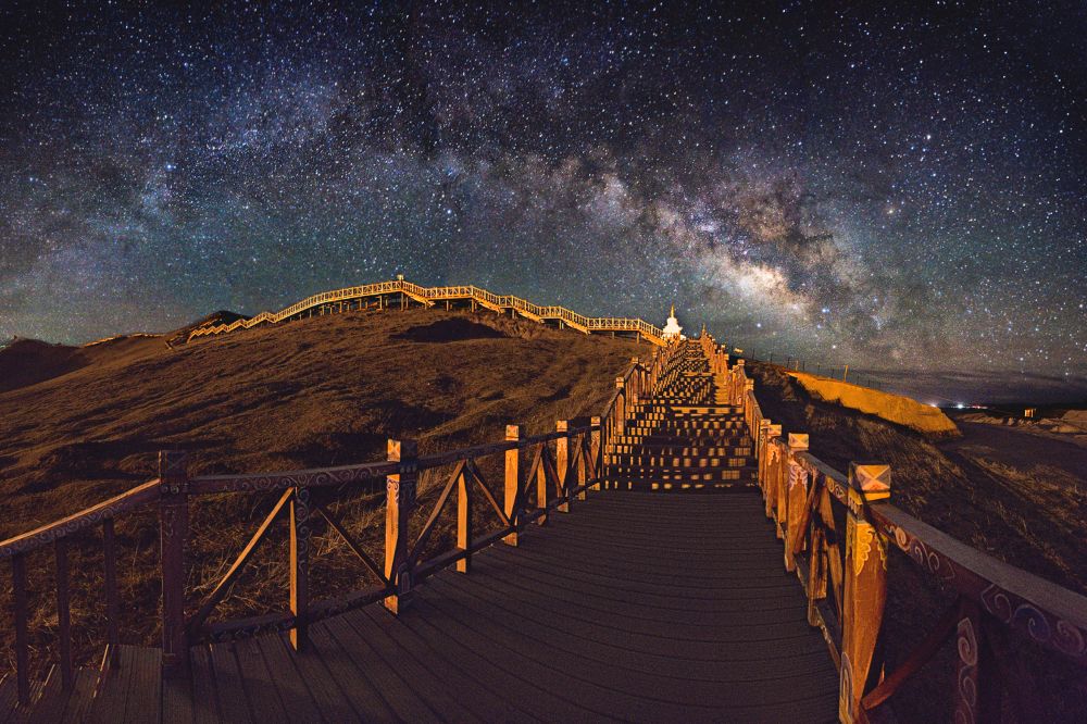 夜晚,站在海拔三千多米的山顶,你将被大片星空包裹,没有城市的光污染,星星肉眼可见。黎明时分,雾气逐渐聚集成云海,等待日出。当太阳出来的一瞬间,云海不断翻腾,你会感叹不虚此行。