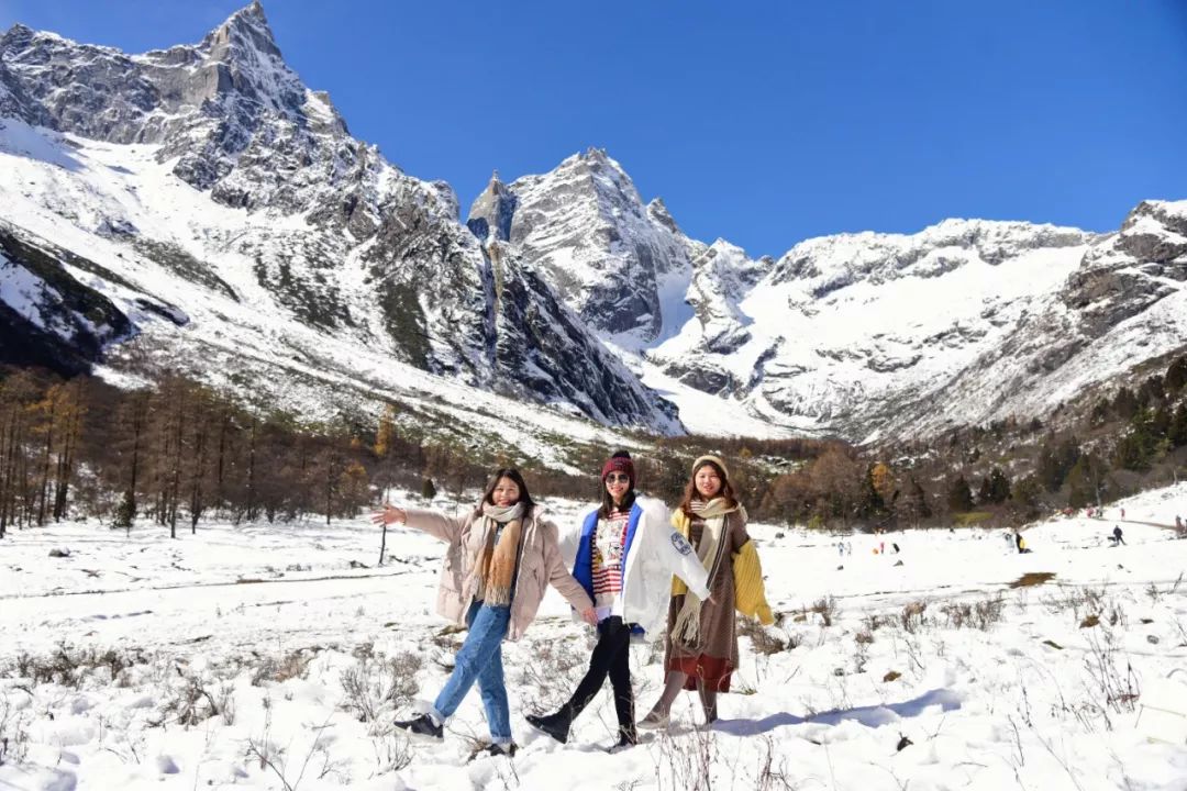 毕棚沟是个适合拍写真的地方,雪山、湖泊、溪流、草甸作为布景,怎么拍都是大片。在寒冷的冬天看着雪花飘落,泡上热乎乎的温泉,在雪地里推雪人、打雪仗。