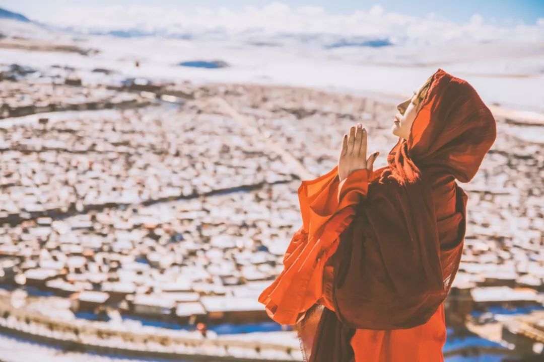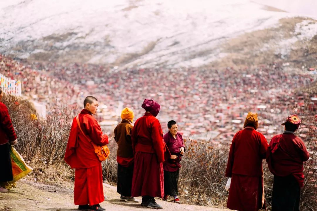 一场大雪悄然而至,盖过山间、屋舍、道路和经幡,色达变成了红白相间的佛国。没有众多游人,没有喧闹的车马,色达比以往要更加安静,鲜少有人能看到色达的另一面。