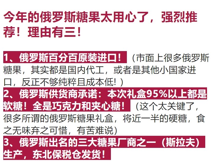 保证每一袋每一颗糖都是正宗俄罗斯进口,并且经过严格消杀、检测的,真正让大家吃的放心!
